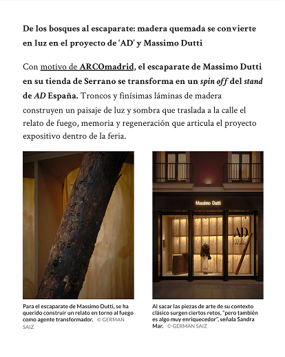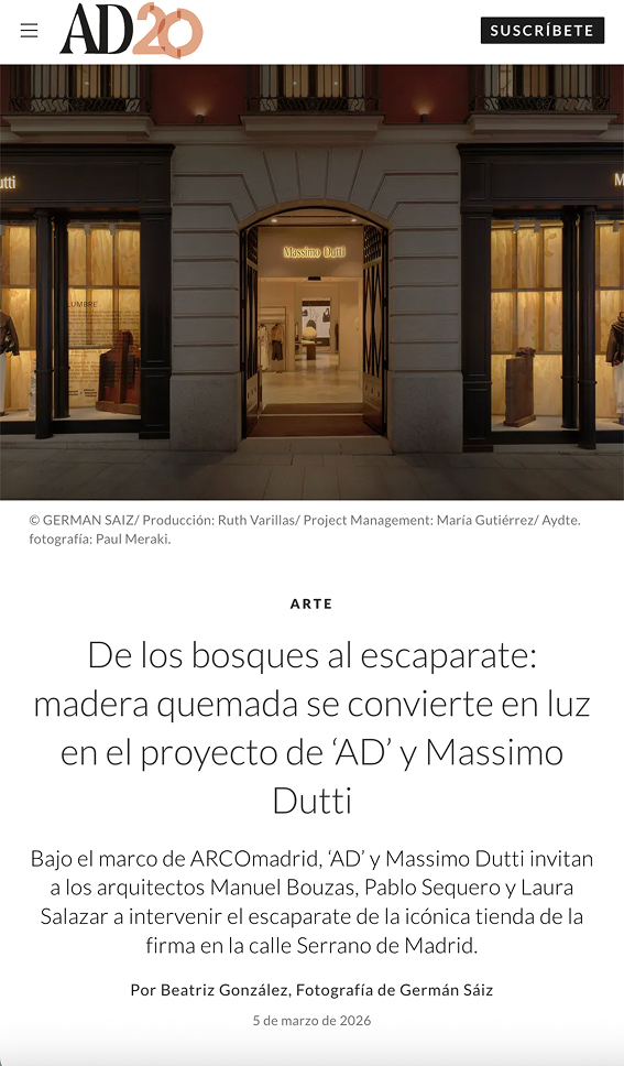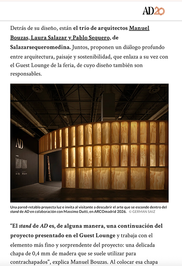 La colaboración entre AD, Massimo Dutti, el arquitecto Manuel Bouzas y el estudio salazarsequeromedina ha despertado el interés de diversos medios. Las publicaciones resaltan su carácter interdisciplinar y la manera en que el proyecto articula un encuentro entre moda, pensamiento espacial y cultura.