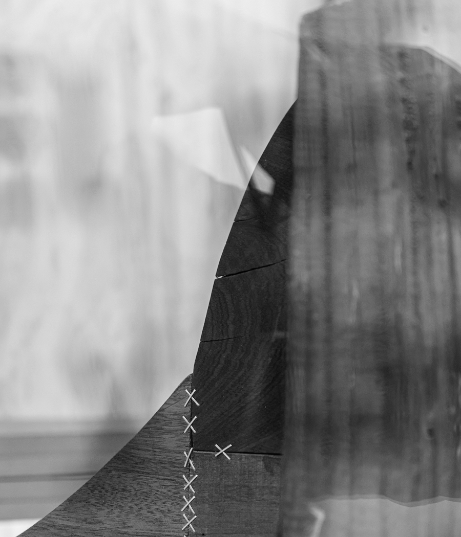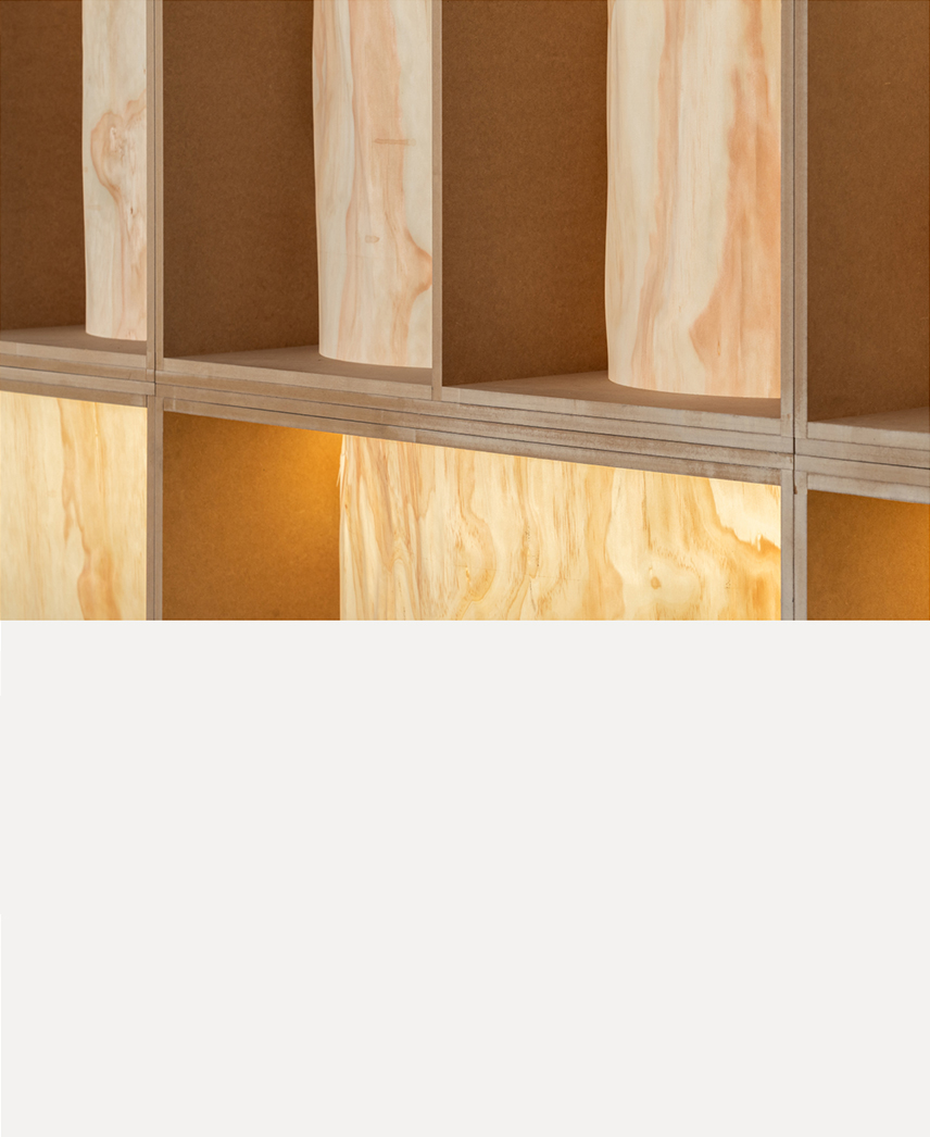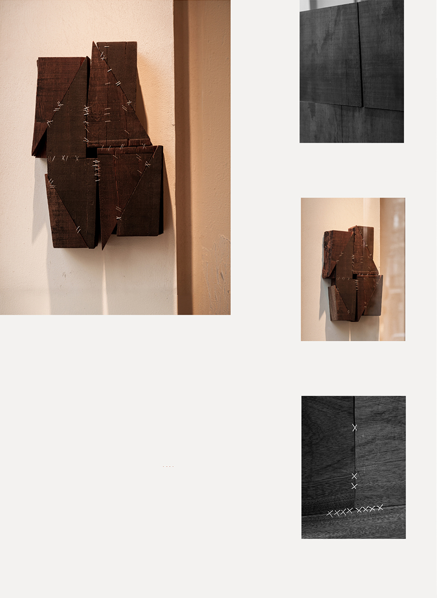 Este relato visual da continuidad a la visión presentada por los autores en el stand de AD en la feria de arte contemporáneo. El proyecto se articula a través de raíces de troncos y láminas de madera recuperadas tras los incendios en los montes de Laza (Ourense), componiendo un paisaje de luces y sombras donde la materia quemada se convierte en símbolo de transformación.
