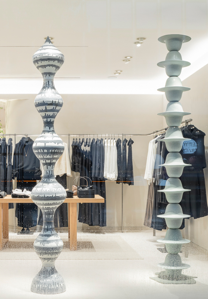 Los artistas seleccionados para exponer su obra en la flagship store de Londres, Jessica Boubetra y Jean-Baptiste, desarrollan un trabajo escultórico centrado en la impresión de cerámica en 3D, impulsados por una pasión compartida por la ciencia ficción.