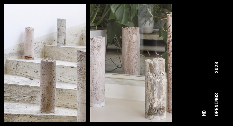 La obra que Marit Wolters expone en la tienda de Viena explora la relación entre naturaleza y arquitectura a través de los materiales individuales y locales, la exploración de sus propiedades y el tema del reciclaje.