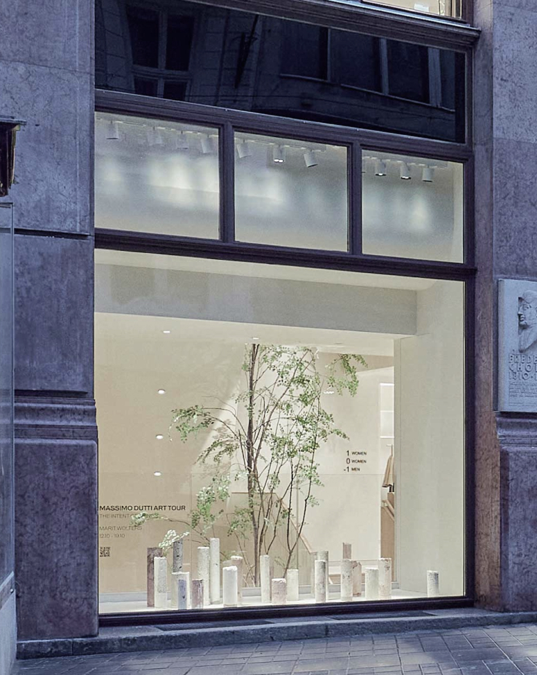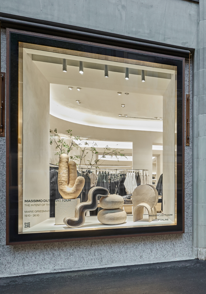 Para la inauguración de la nueva flagship store en Zurich, la artista Marie Griesmar lleva hasta los escaparates de Massimo Dutti su obra que sirve como herramienta de comunicación para promover la ciencia relacionada con el arte.