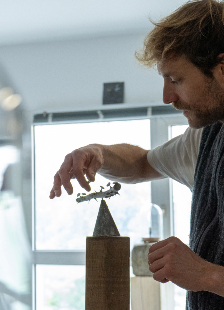 Inspirado por la arquitectura en busca de elementos cotidianos que se conviertan en poesía y movimiento, el trabajo de Luke James surge del contexto en el que se desarrolla. Su práctica invoca una relación física con los materiales y el espacio. Nos obliga a prestar atención a los materiales. A nuestro entorno y a los momentos y gestos sensibles. La práctica de Luke James -que abarca principalmente la escultura, pero también la fotografía y la pintura- evoca una relación física con los materiales y el espacio. Sus esculturas podrían descomponerse como una serie de gestos sensibles y ponderados realizados sobre materias primas.