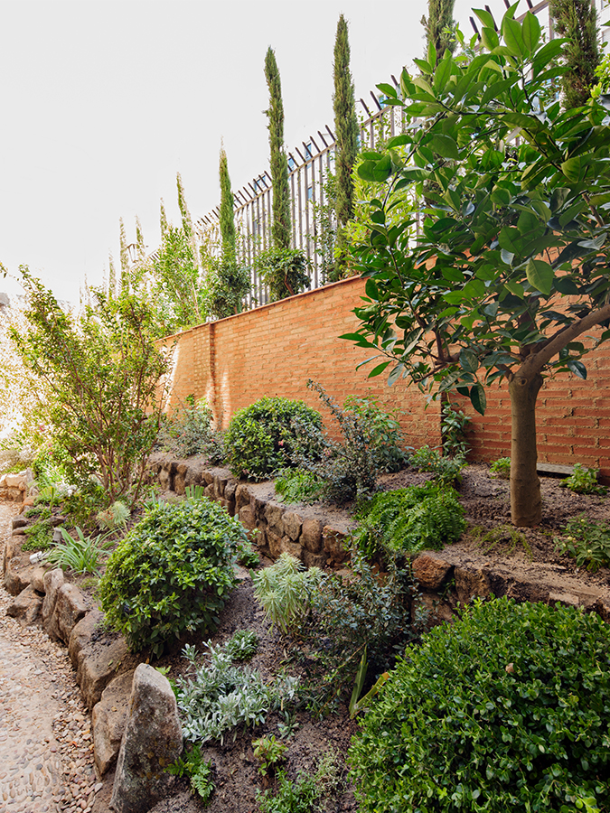 DE PLANTAS APROPIADAS PARA EL CLIMA Y SUELO. EN ESTE CASO SE HAN ELEGIDO ESPECIES ACORDES CON EL CLIMA MEDITERRÁNEO.