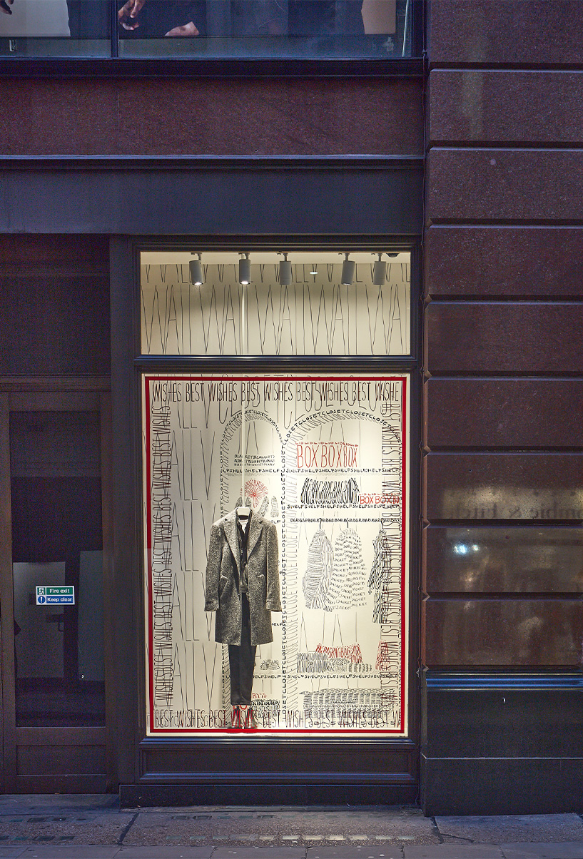 Thomas Broomé mezcla la ilustración con la tipografía de una forma sublime y utiliza las palabras para sus creaciones. El objetivo de su colaboración con Massimo Dutti en la tienda de Regent St ha sido aportar un plus estético a sus escaparates con una intervención inédita para disfrutar del espíritu festivo.