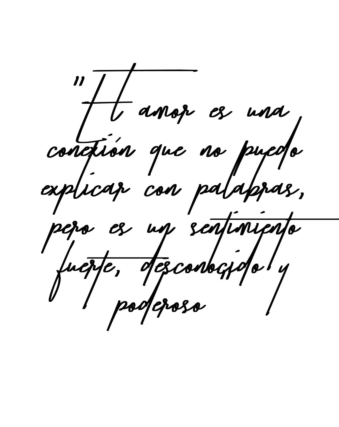 El amor es una conexión que no puedo explicar con palabras, pero es un sentimiento fuerte, desconocido y poderoso.