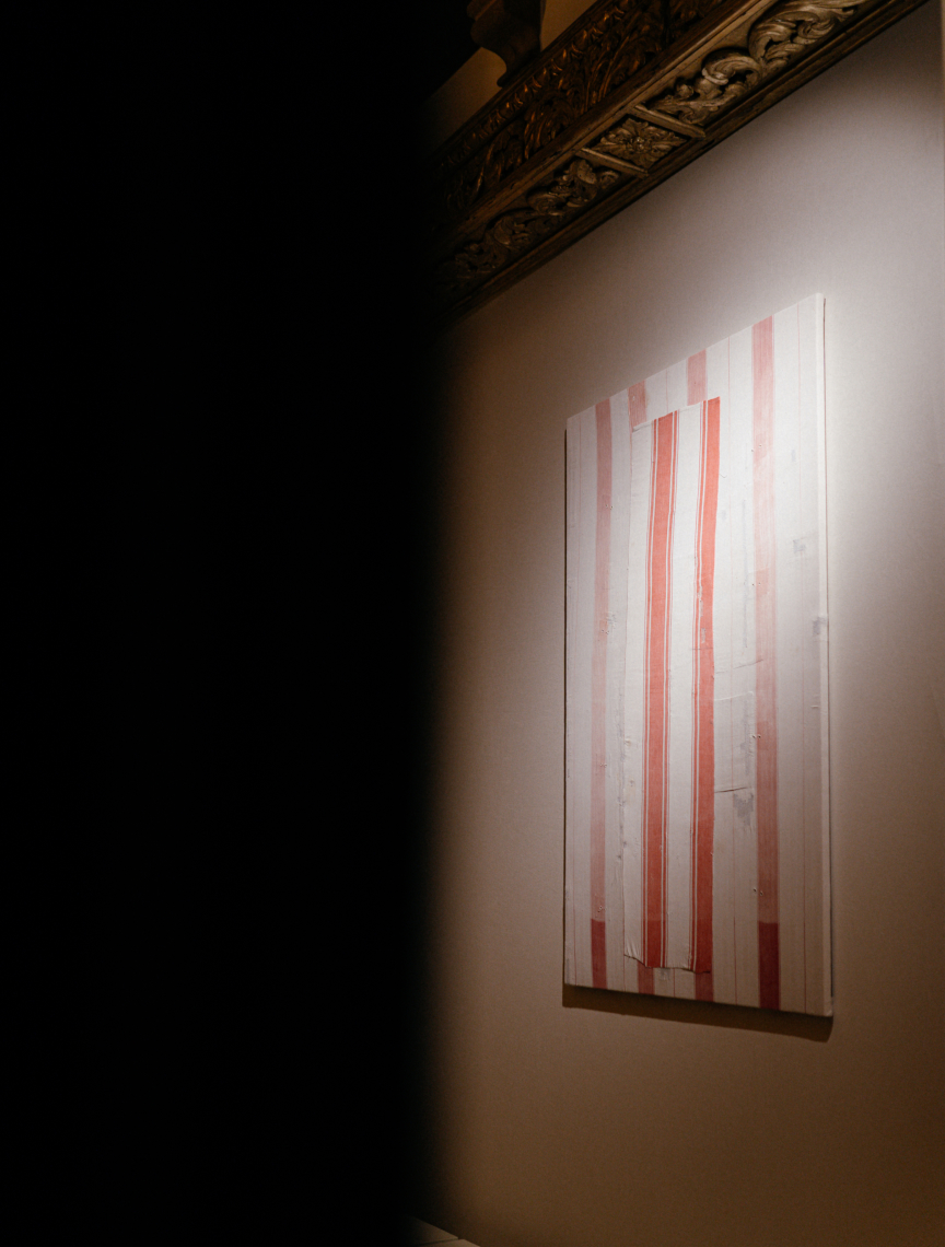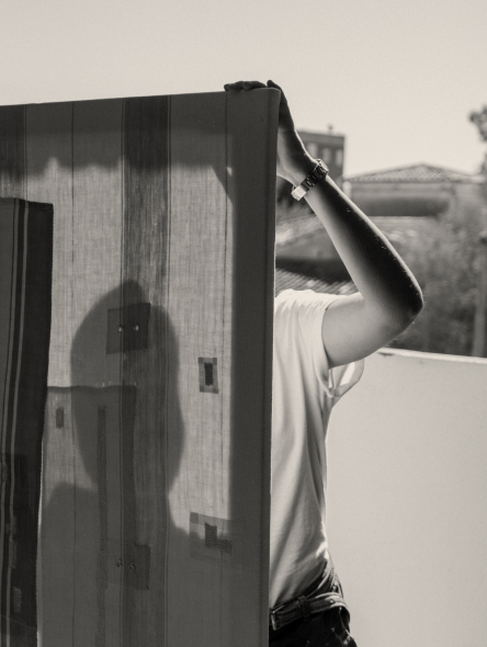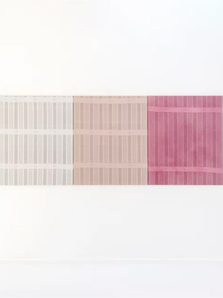 En su obra actual, María Tinaut cuestiona la tradición de la pintura alterando viejas fundas de colchón mediante teñido y blanqueado, transformando estos objetos cotidianos en composiciones abstractas que encarnan la fisicidad del propio lienzo.