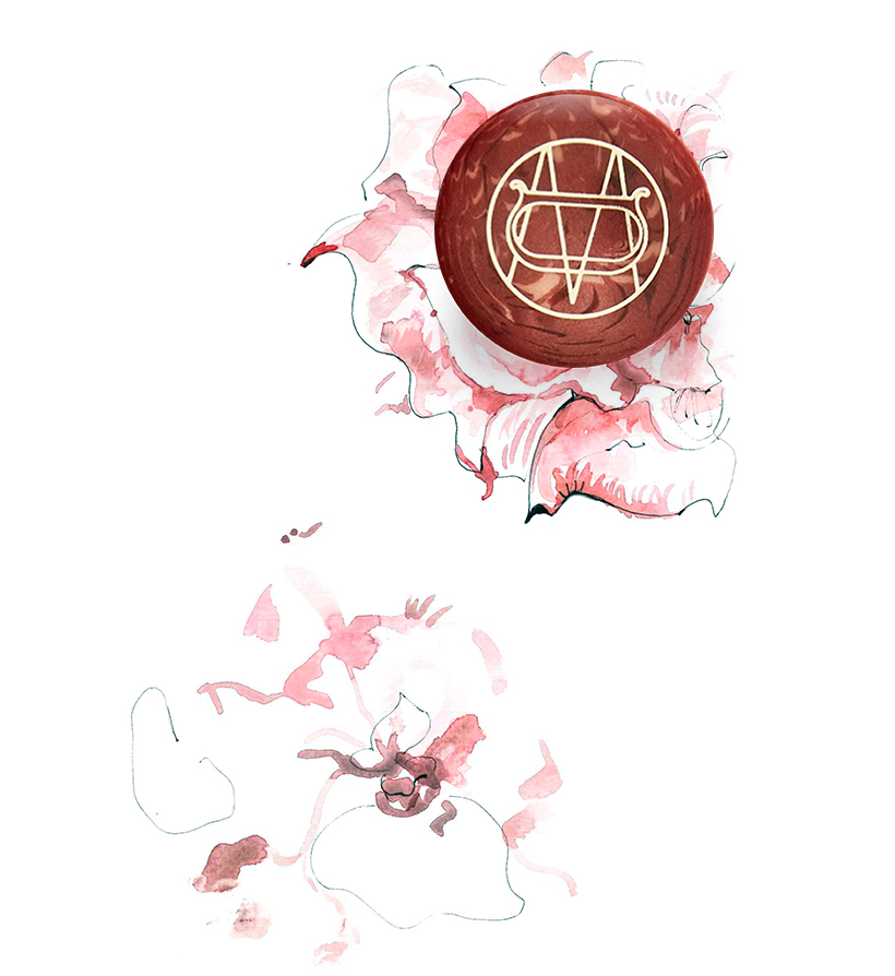 以杏仁为基础的配方;鸢尾,一种花朵艳丽且具有天鹅绒质地的植物;桃子精华;酸樱桃(樱花)的甜美香调;香草,带有甜美而具有穿透力的香气,并充满层次;以及天鹅绒玫瑰,一种质地丰富、香气深沉浓郁且充满活力的花卉。