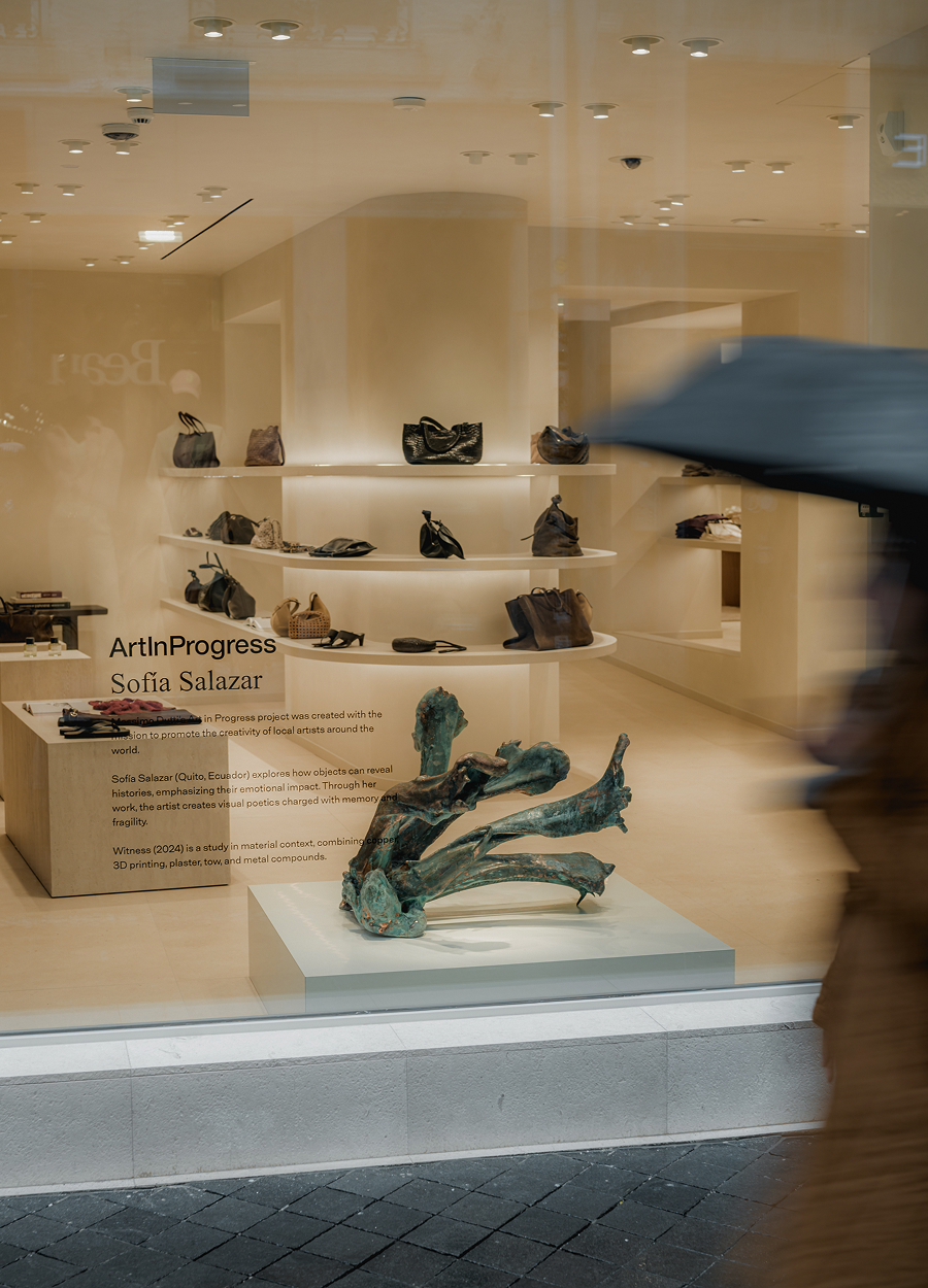 El proyecto ArtlnProgress de Massimo Dutti se creó con la misión de promover la creatividad de artistas contemporáneos de todo el mundo. Una de las últimas colaboraciones ha sido con la artista ecuatoriana Sofía Salazar Rosales en la tienda de Maastricht (Países Bajos). Una tienda que vuelve a afianzar el nuevo concepto de interiorismo, en el que la luz y materias naturales como la madera juegan un papel fundamental.