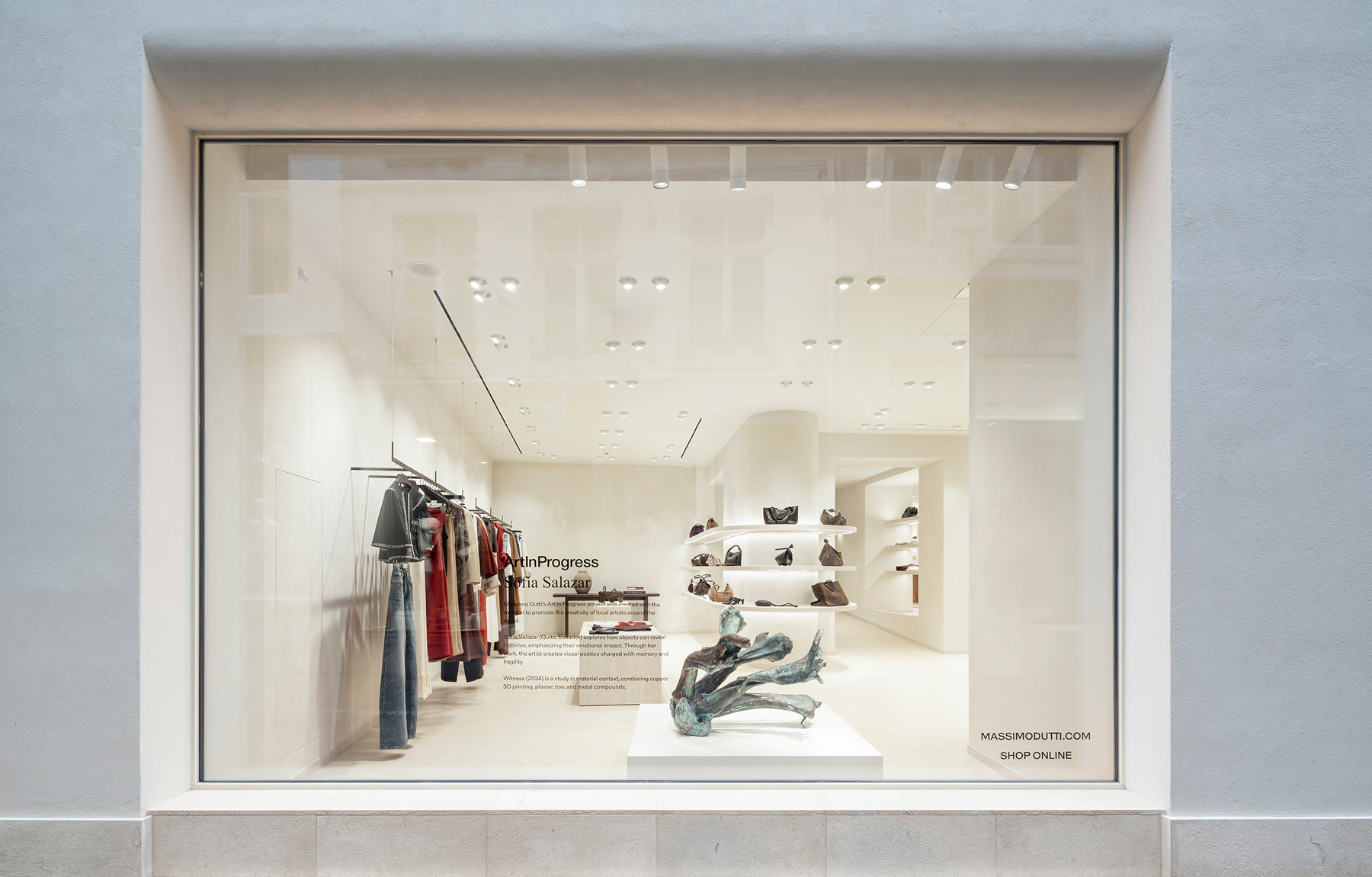 El proyecto ArtlnProgress de Massimo Dutti se creó con la misión de promover la creatividad de artistas contemporáneos de todo el mundo. Una de las últimas colaboraciones ha sido con la artista ecuatoriana Sofía Salazar Rosales en la tienda de Maastricht (Países Bajos). Una tienda que vuelve a afianzar el nuevo concepto de interiorismo, en el que la luz y materias naturales como la madera juegan un papel fundamental.