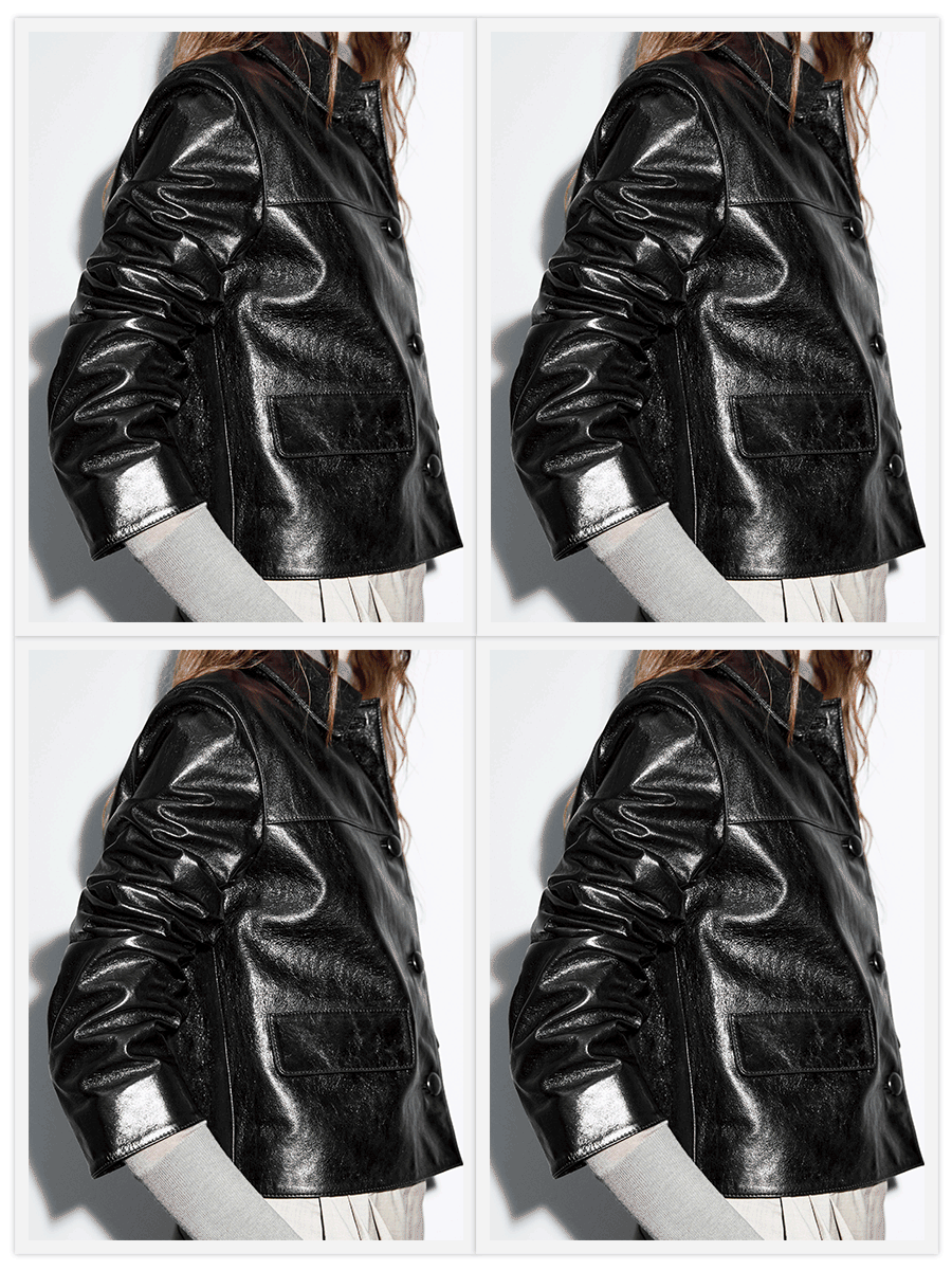 Chaqueta corta de piel con acabado en napa, silueta estructurada y cuello camisero. Una pieza icónica que transmite fuerza, carácter y atemporalidad.