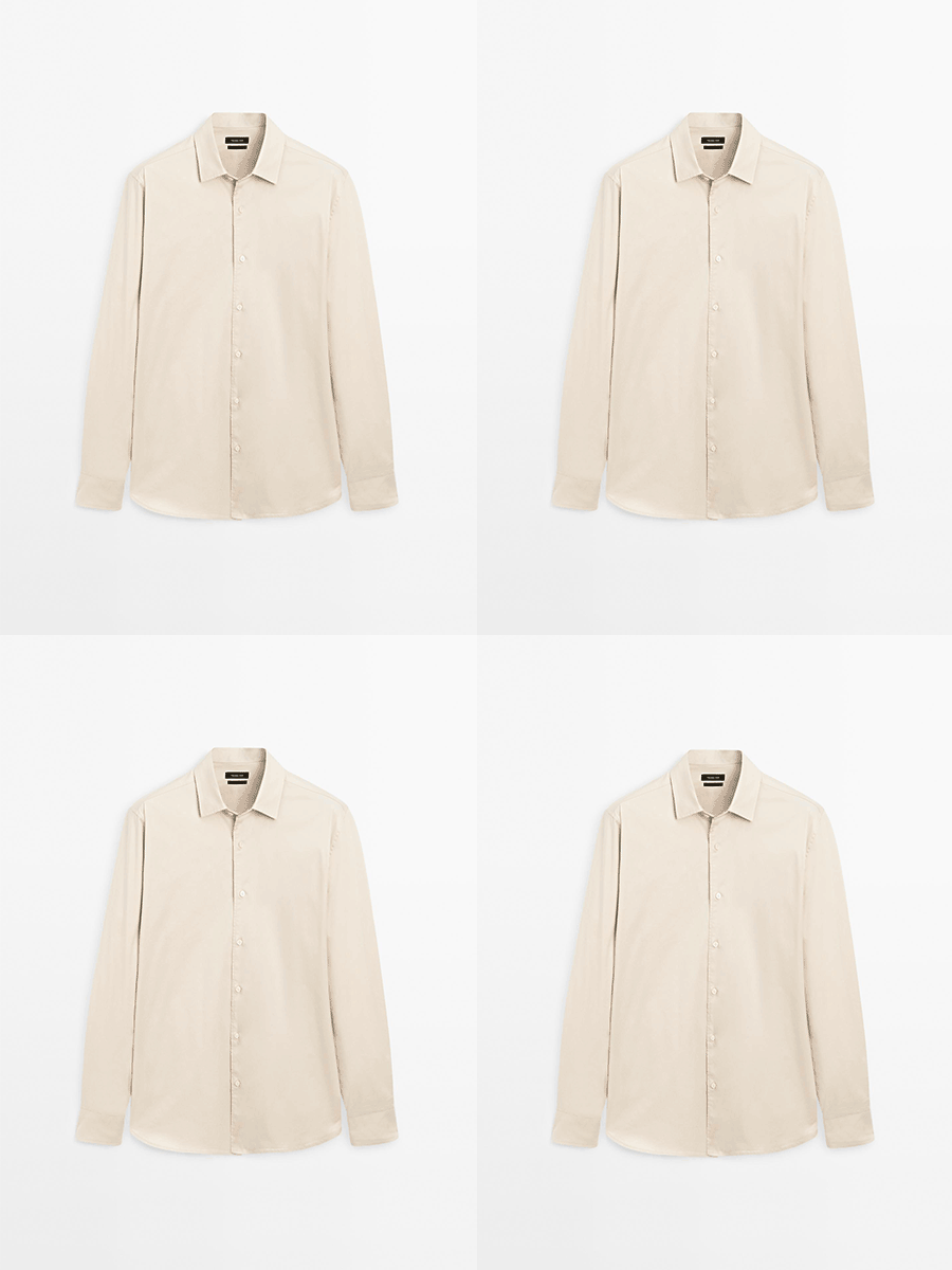 Camisa slim fit: silueta estilizada con manga larga y puño abotonado, cuello camisero impecable y botonadura frontal que fusiona sofisticación atemporal con modernidad urbana.
