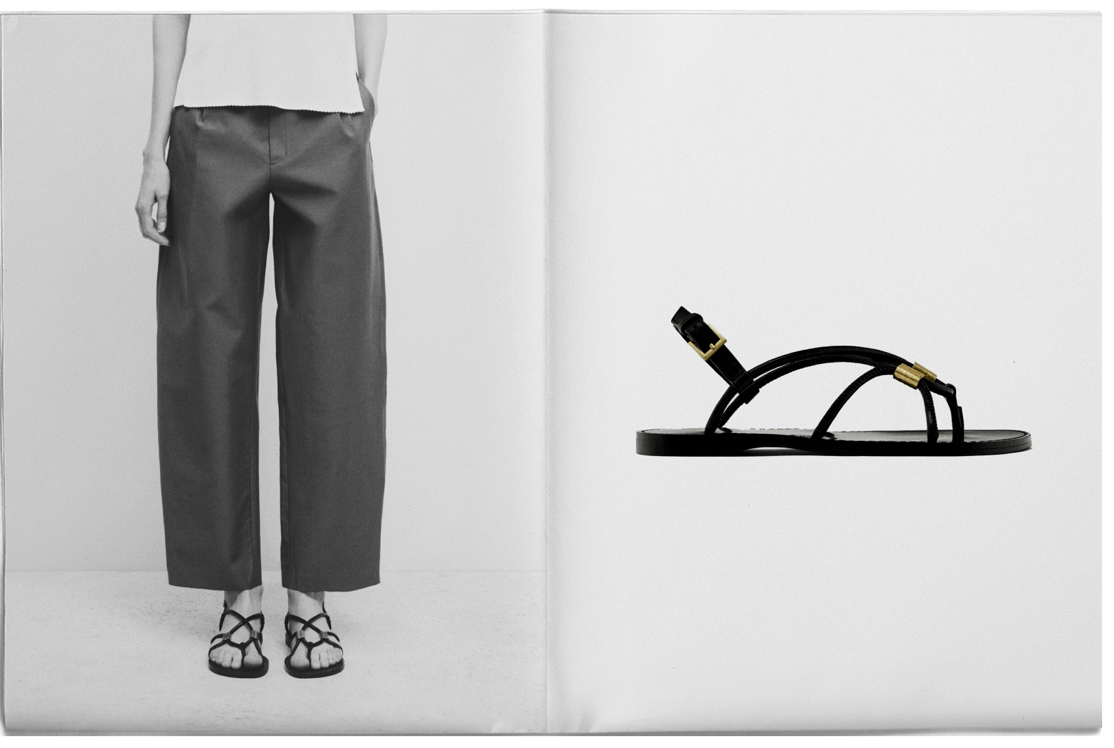 Las sandalias negras son un indispensable en la temporada primavera-verano. Y es que combinan con todos los estilismos que podamos crear. Además, modelos planos como este aseguran comodidad para todo el día.