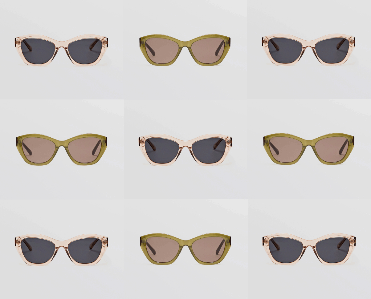 Las gafas gatunas son la tendencia que amplía el resto de tendencias posibles en gafas de sol. De silueta similar a las cuadradas, sus líneas son ligeramente más cortas y menos panorámicas. Están hechas de resina, una material ligero, resistente y disponibles en tres colores: naranja, verde y arcilla para dar una mayor luminosidad al rostro. Todas las gafas llevan lentes con filtro de protección UV III.