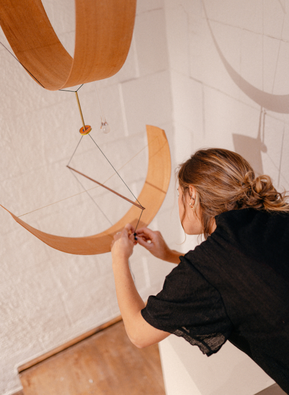 La práctica artística de Ángela Jiménez Durán gira en torno a la instalación y la escultura, incorporando a veces la escritura y el dibujo para elaborar narrativas ficticias que exploran futuros inciertos pero posibles.
