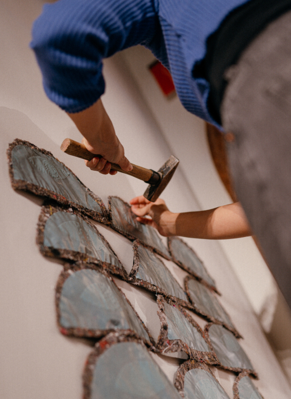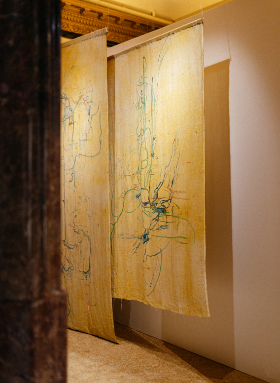 Elisa Pardo Puch crea instalaciones inmersivas que mezclan dibujo, texto y escultura para transformar espacios y ofrecer nuevas narrativas. Estas narrativas invitan al espectador a establecer conexiones con temas como la transformación, el inconsciente, el deseo, la memoria y la construcción de historias.