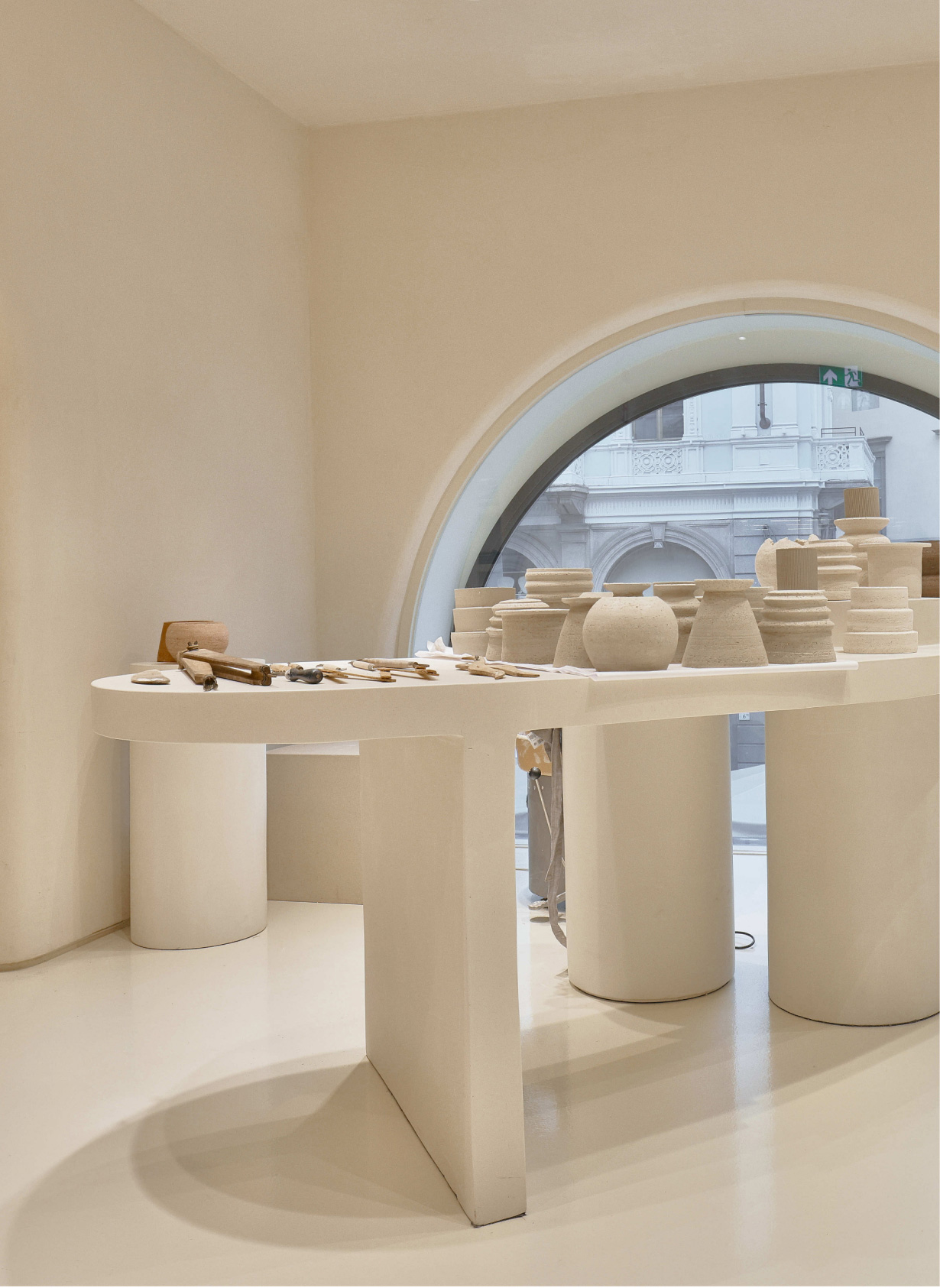 Tres rincones de la tienda transformados en pequeños ateliers en los que se hizo la magia. Las piezas de cerámica creadas en exclusiva para su exposición y venta en la tienda de Via Dante, 7 han sido unos originales contenedores para las velas que edita la firma.