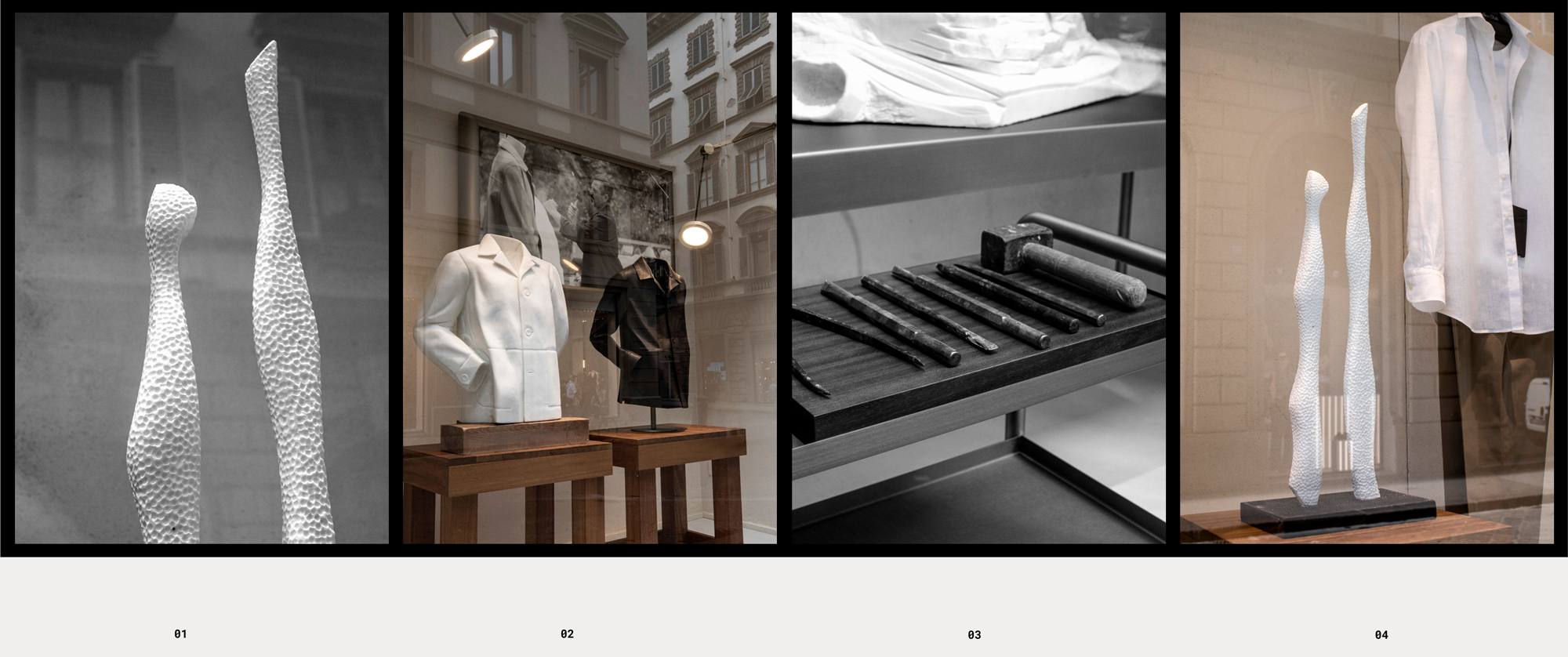 Las esculturas de Michele Monfroni que se exponen en la tienda de Massimo Dutti, en Florencia, coincidiendo con el Salon Pitti Uomo, ocupan un espacio destacado de sus escaparates. Una vez más arte y moda confluyen en un mismo espacio