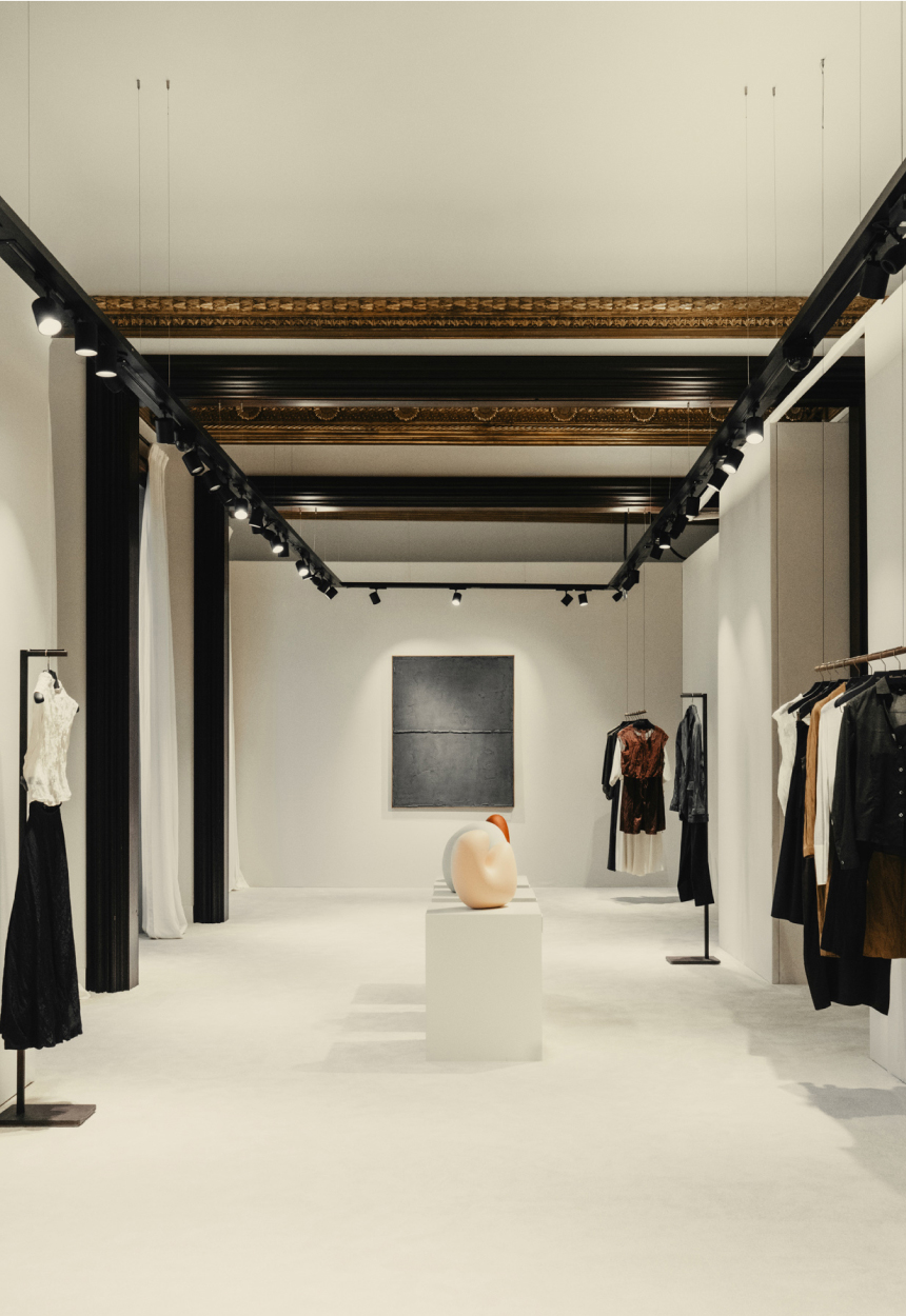 Tras el desfile y durante 10 días, la tienda se convirtió en un espacio donde la moda y el arte convergen, generando una atmósfera de creatividad emergente y constante evolución. El objetivo del proyecto era ir más allá de la simple fusión moda / arte involucrando al público en una experiencia ecléctica que refleja el carácter colaborativo entre distintas disciplinas artísticas.