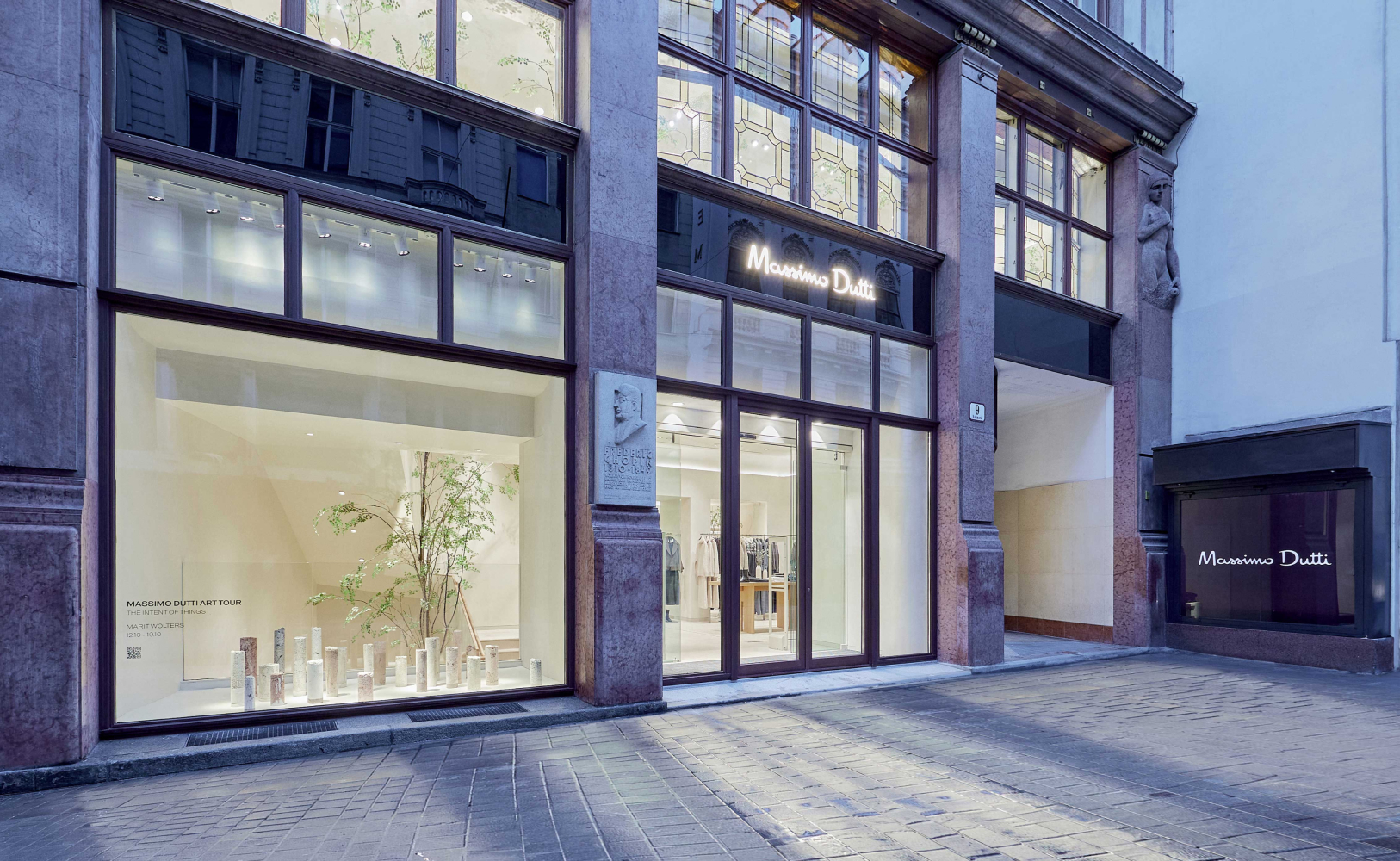 Massimo Dutti inaugura una nueva tienda en Viena con la que afianza un nuevo concepto de interiorismo, mucho más depurado, en el que la luz y las materias naturales juegan un papel fundamental. La tienda se abre al exterior y conecta directamente con el interior a través de grandes ventanales.