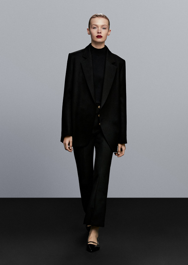 The black blazer has the characteristics that make it an absolute wardrobe essential; it is timeless, it combines with everything and the new versions have details that personalise it, such as the absence of any type of fastening.