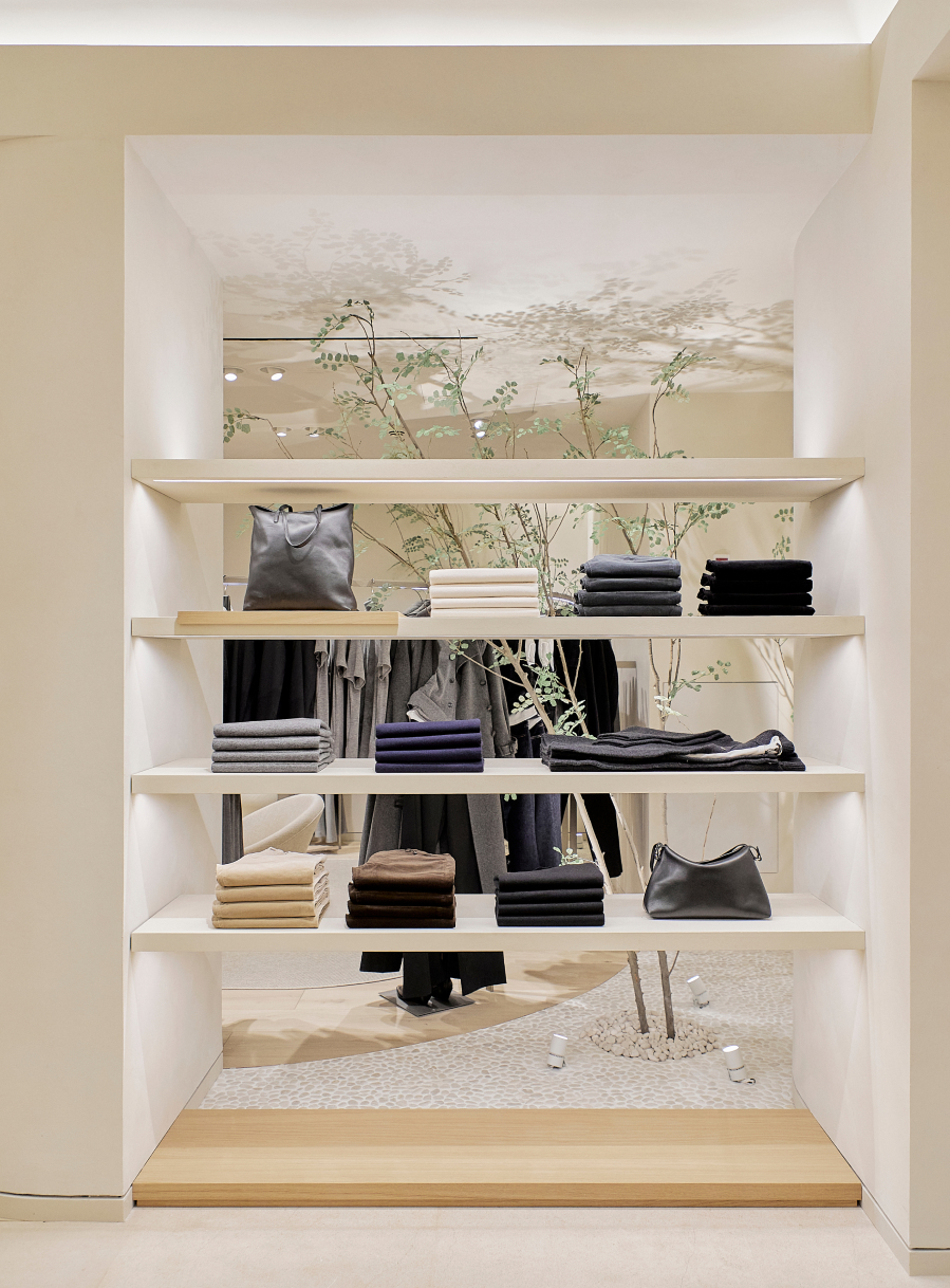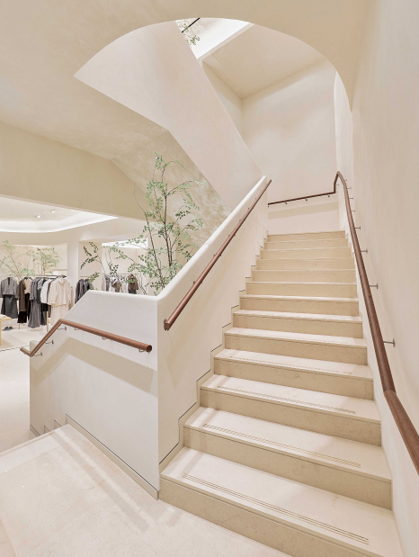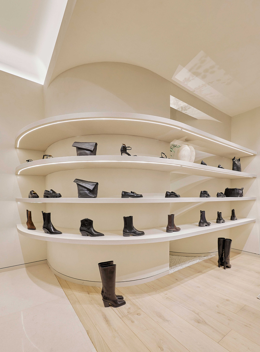 La propia arquitectura de la tienda va creando el mobiliario y definiendo los corners. Maderas macizas, piedras naturales y encalados forman parte de la esencia de la marca. Las nuevas tiendas Massimo Dutti responden al concepto más avanzado de ecoeficiencia del Grupo Inditex, reduciendo el consumo eléctrico y el de agua.